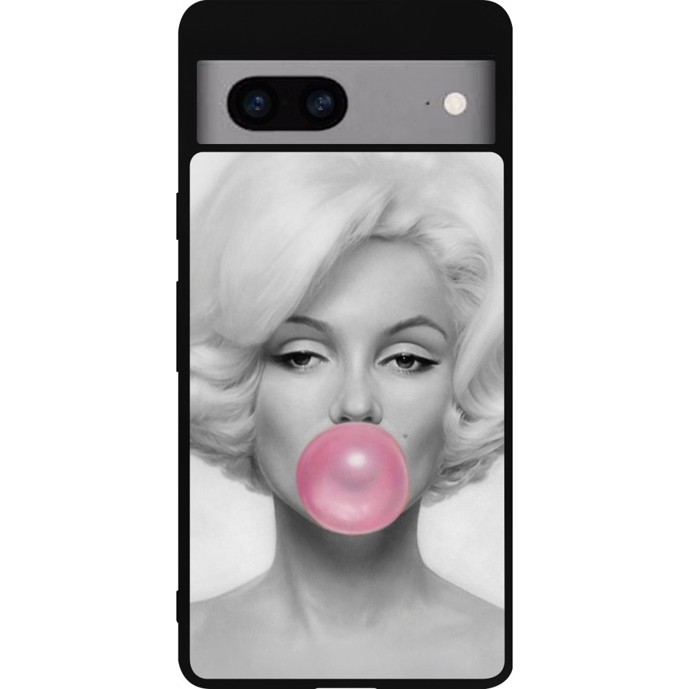 Coque Google Pixel 7a - Silicone rigide noir Marilyn Bubble