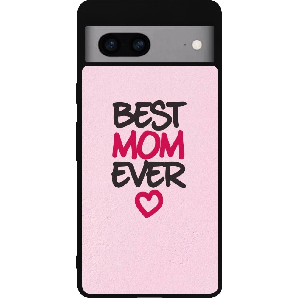 Coque Google Pixel 7a - Silicone rigide noir Mom 2023 best Mom ever pink