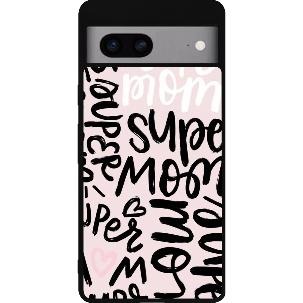 Coque Google Pixel 7a - Silicone rigide noir Mom 2024 Super mom