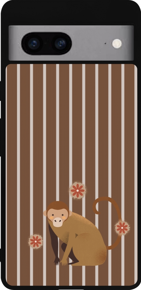 Coque Google Pixel 7a - Silicone rigide noir Monkey with stripes