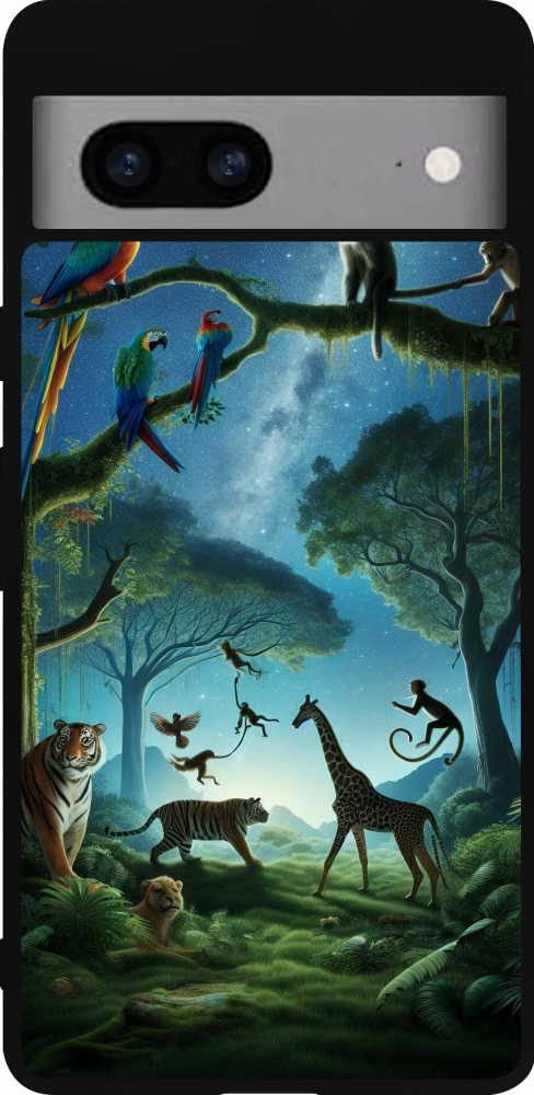 Coque Google Pixel 7a - Silicone rigide noir Paradis des animaux exotiques