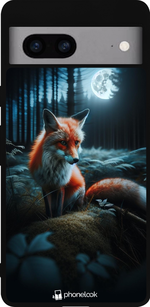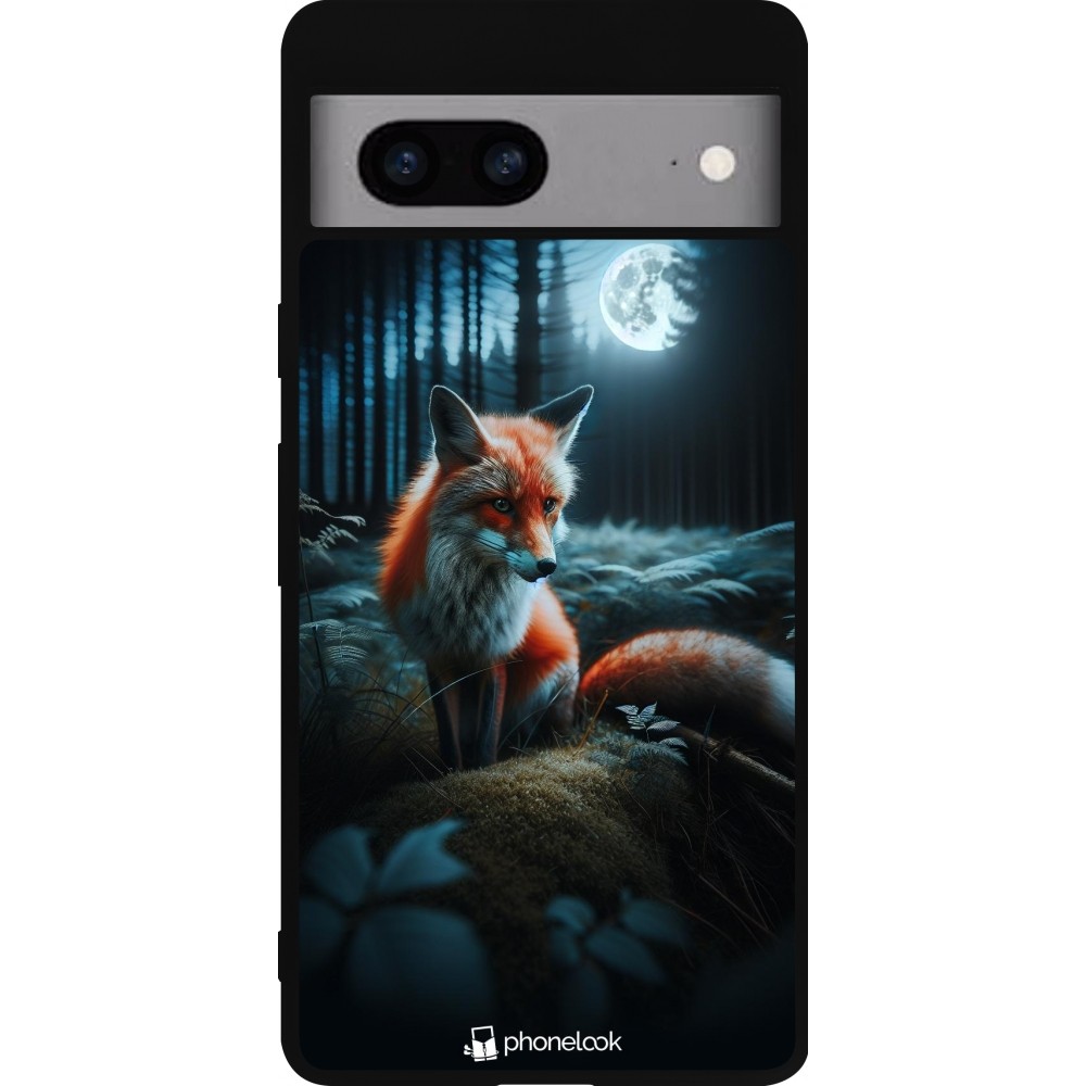 Coque Google Pixel 7a - Silicone rigide noir Renard lune forêt