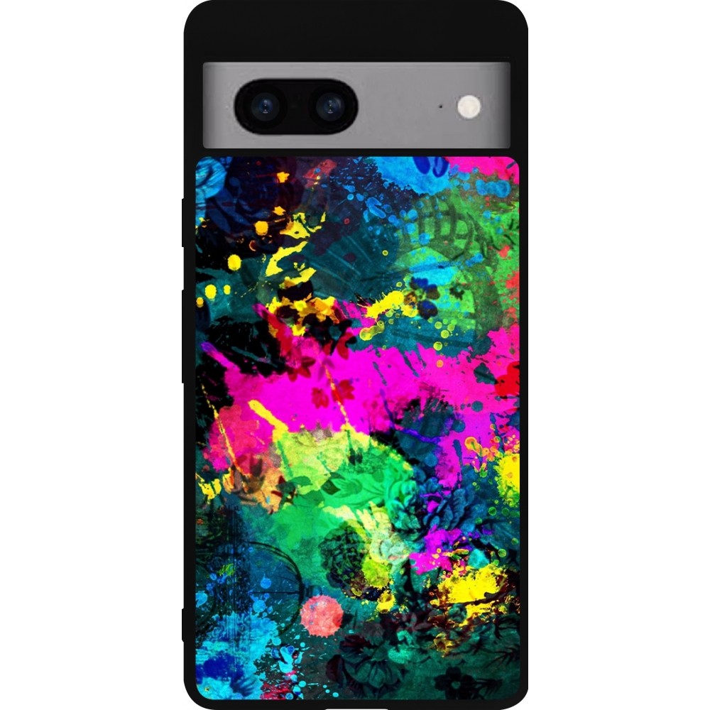 Coque Google Pixel 7a - Silicone rigide noir Splash paint
