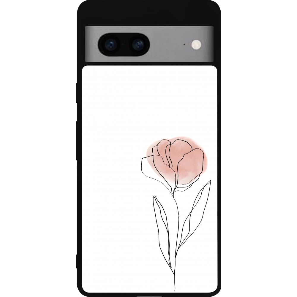 Coque Google Pixel 7a - Silicone rigide noir Spring 23 minimalist flower