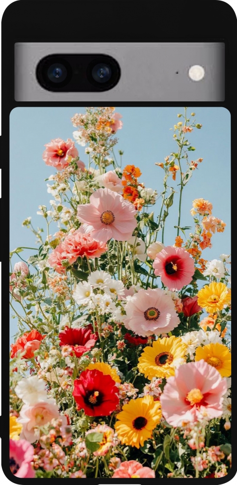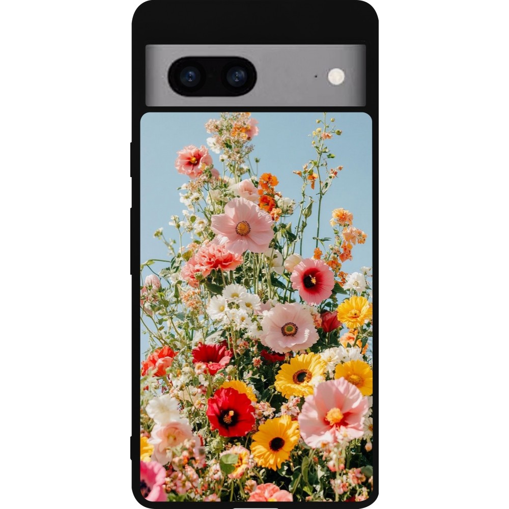 Coque Google Pixel 7a - Silicone rigide noir Spring flowers Spring 2026