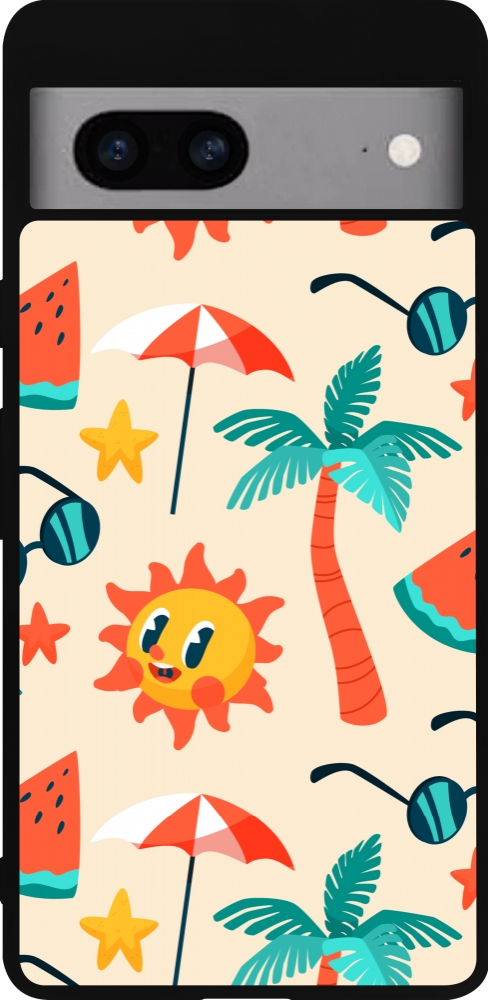 Coque Google Pixel 7a - Silicone rigide noir Summer 2025 Pattern soleil