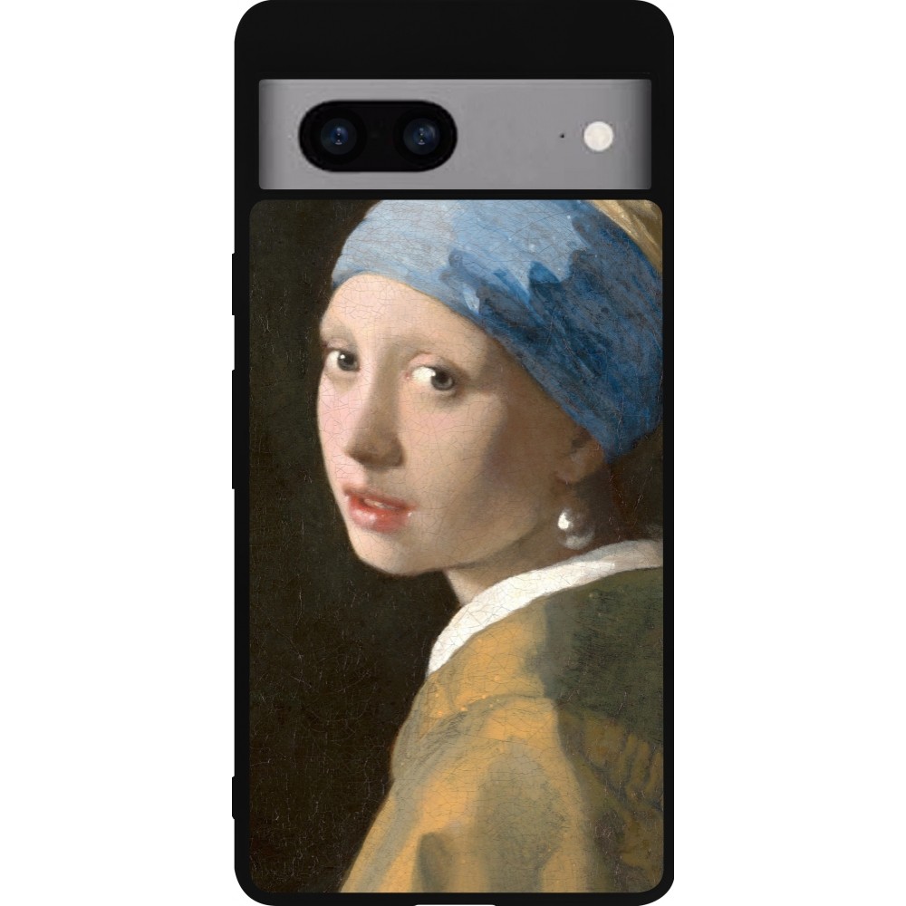 Coque Google Pixel 7a - Silicone rigide noir Tableau art - La Jeune fille à la perle - Johannes Vermeer