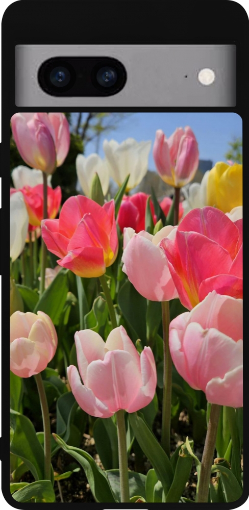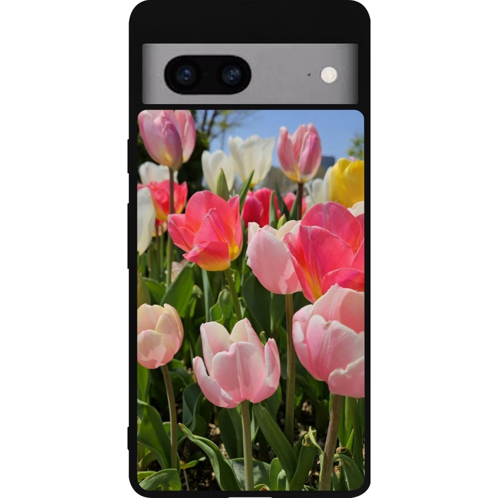Coque Google Pixel 7a - Silicone rigide noir Tulips Spring 2026