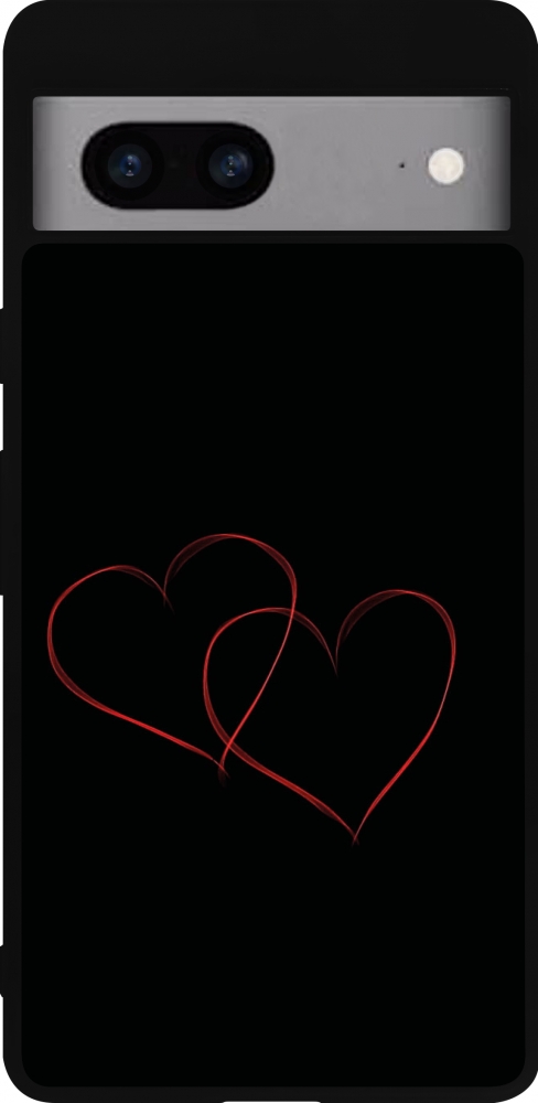 Coque Google Pixel 7a - Silicone rigide noir Valentine 2023 attached heart