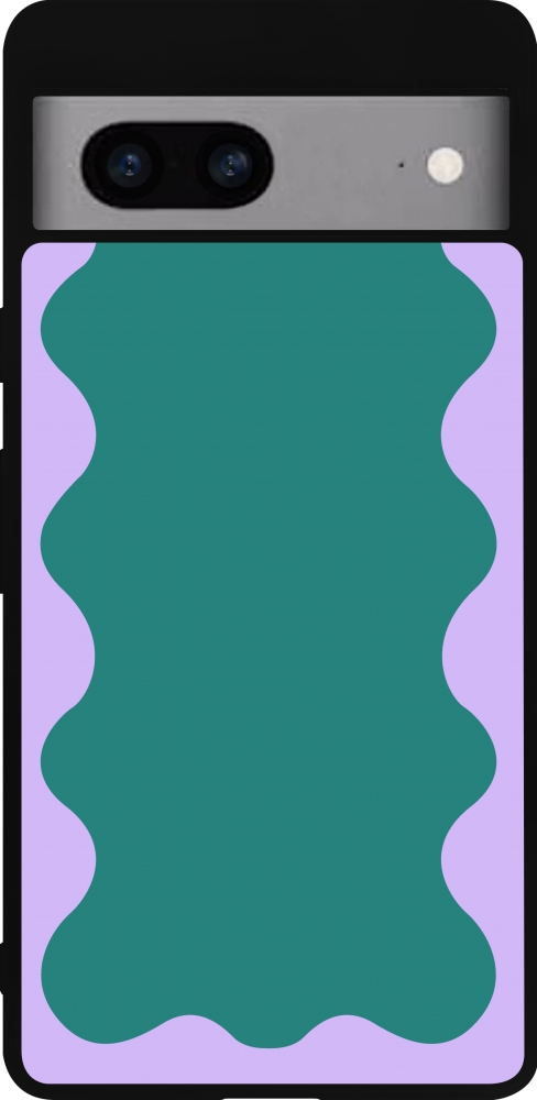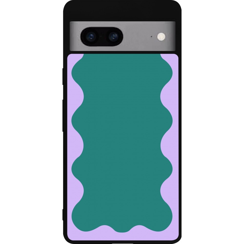 Coque Google Pixel 7a - Silicone rigide noir Wavy Rectangle Green Purple