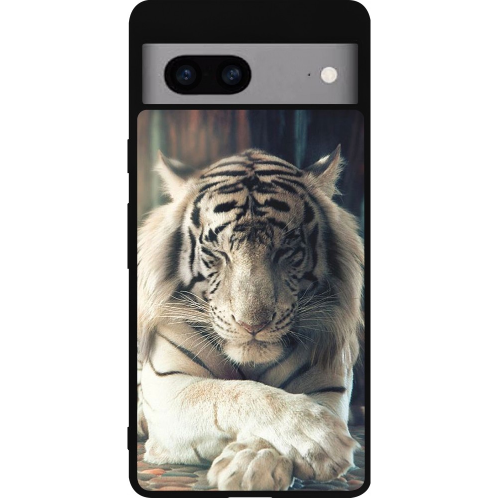 Coque Google Pixel 7a - Silicone rigide noir Zen Tiger