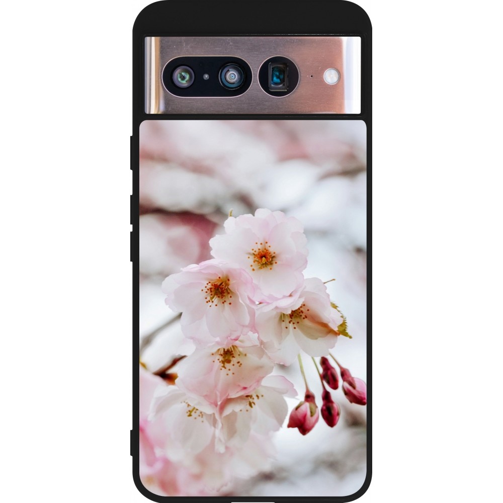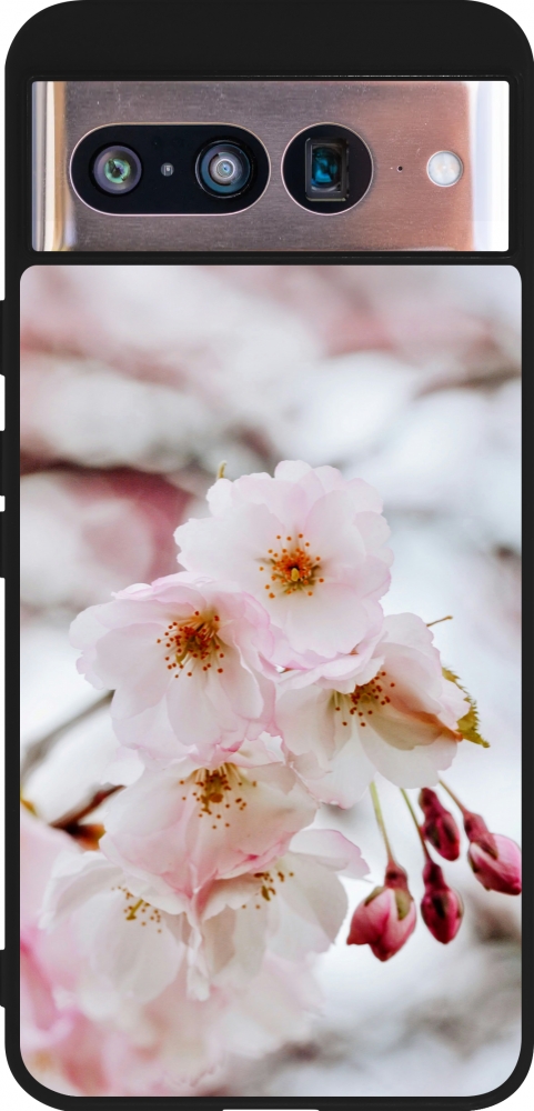 Coque Google Pixel 8 - Silicone rigide noir Cherry tree 2026