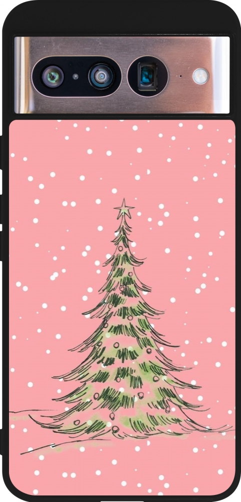 Coque Google Pixel 8 - Silicone rigide noir Christmas 25 Pink Tree