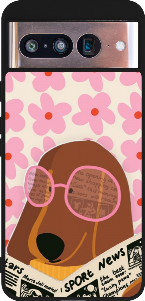 Coque Google Pixel 8 - Silicone rigide noir Dog with newspaper 2026