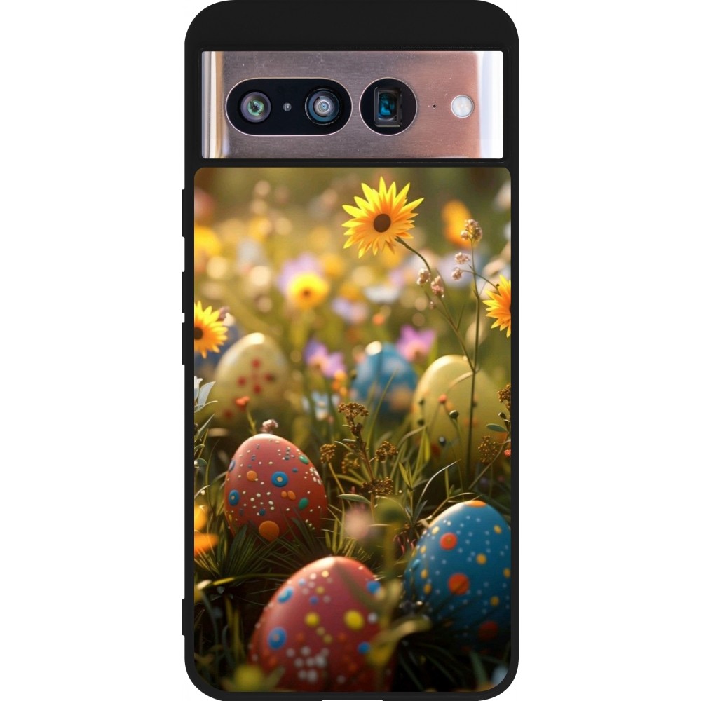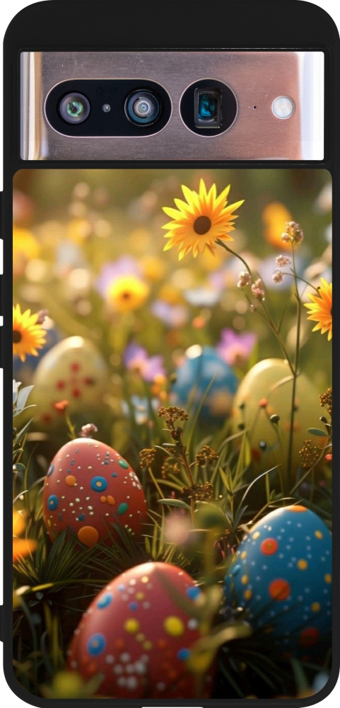 Coque Google Pixel 8 - Silicone rigide noir Easter 2026 Decorated eggs