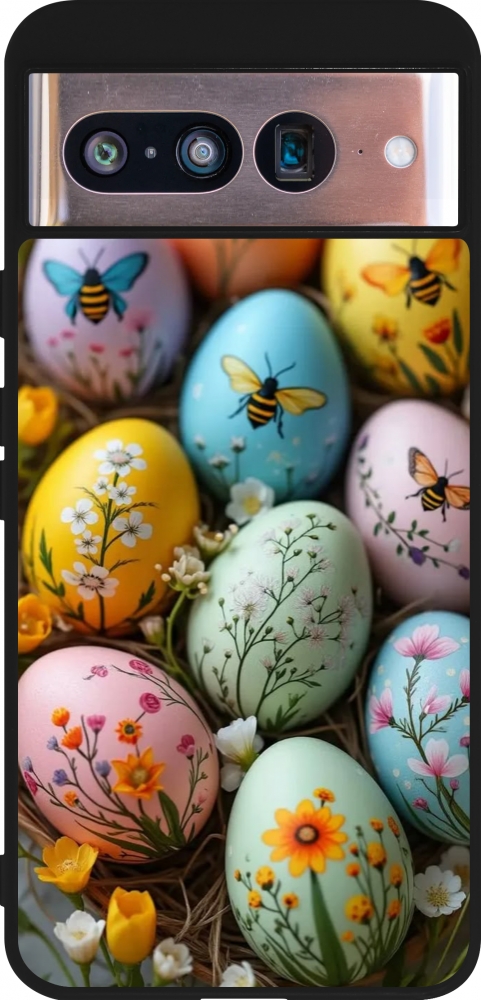 Coque Google Pixel 8 - Silicone rigide noir Easter 2026 Eggs with bees