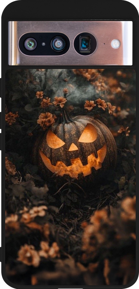 Coque Google Pixel 8 - Silicone rigide noir Halloween 2025 Pumpkin with flowers
