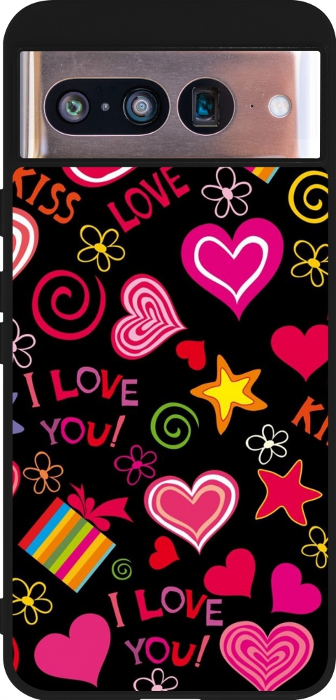 Coque Google Pixel 8 - Silicone rigide noir Valentine 2023 love symbols