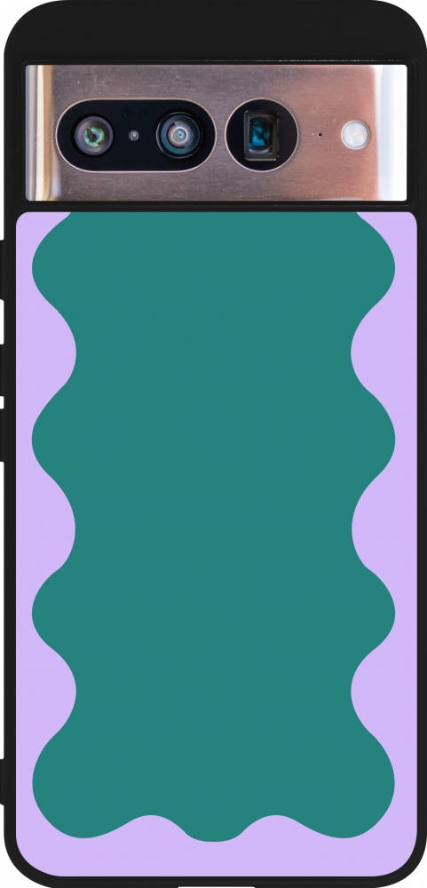 Coque Google Pixel 8 - Silicone rigide noir Wavy Rectangle Green Purple