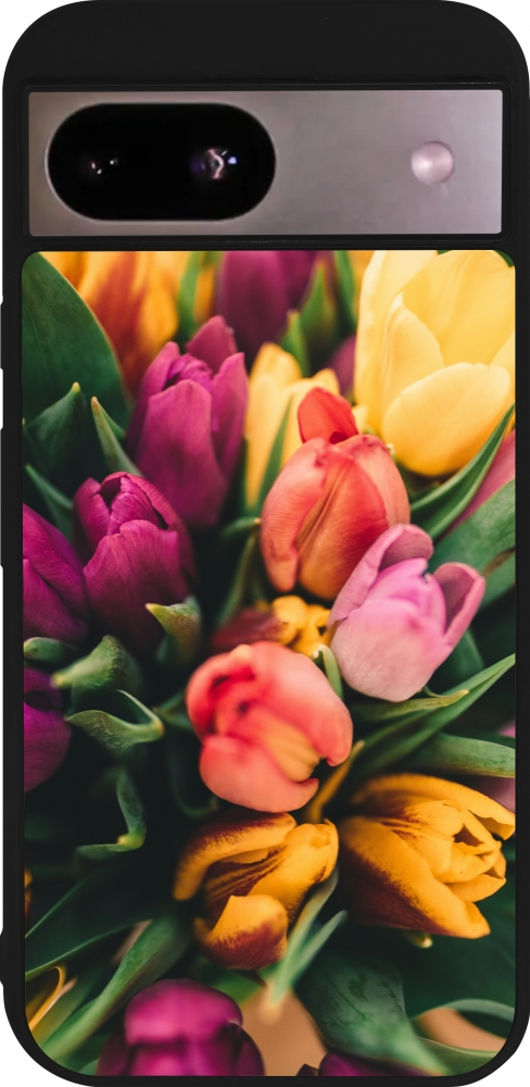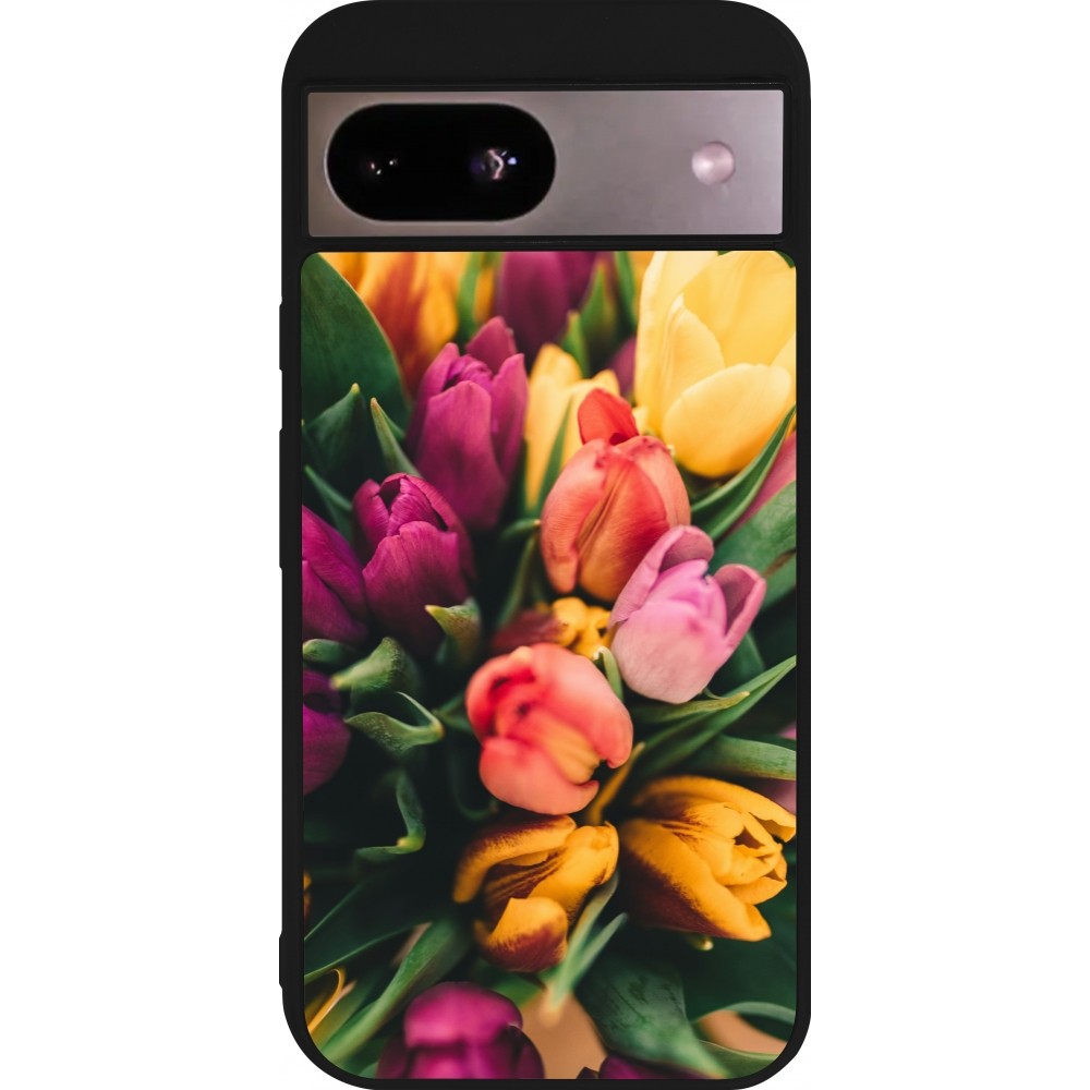 Coque Google Pixel 8a - Silicone rigide noir Bouquet of tulips Spring 2026