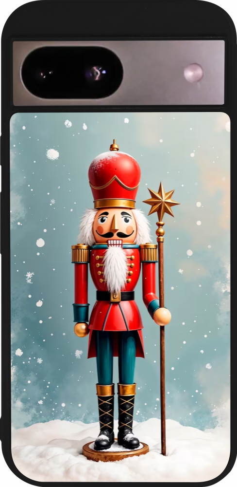 Coque Google Pixel 8a - Silicone rigide noir Christmas 25 Nutcracker Snow