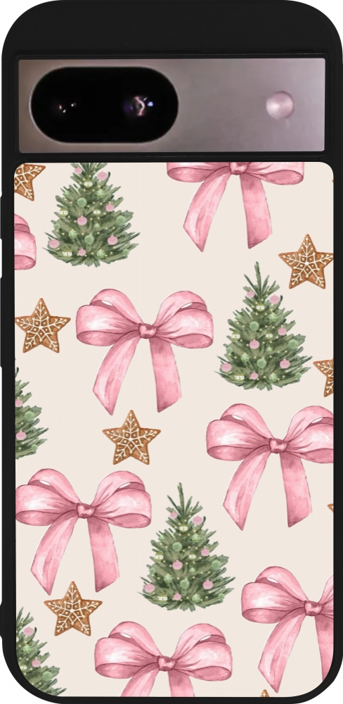 Coque Google Pixel 8a - Silicone rigide noir Christmas 25 Vintage Ribbons