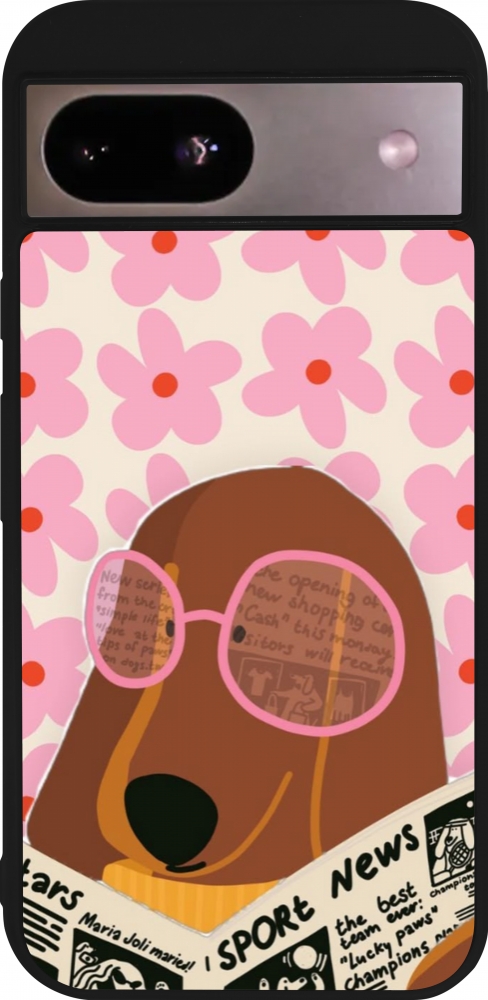 Coque Google Pixel 8a - Silicone rigide noir Dog with newspaper Spring 2026