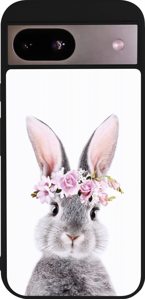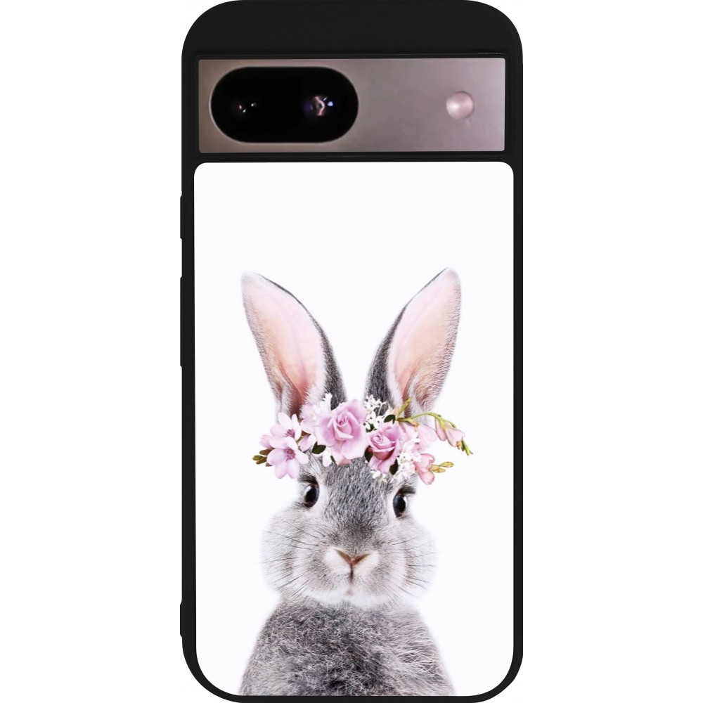 Coque Google Pixel 8a - Silicone rigide noir Easter 2023 flower bunny