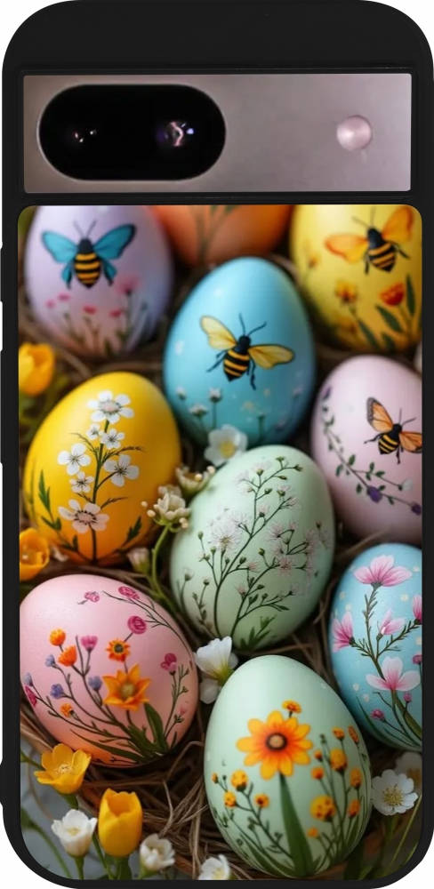 Coque Google Pixel 8a - Silicone rigide noir Easter 2026 Eggs with bees
