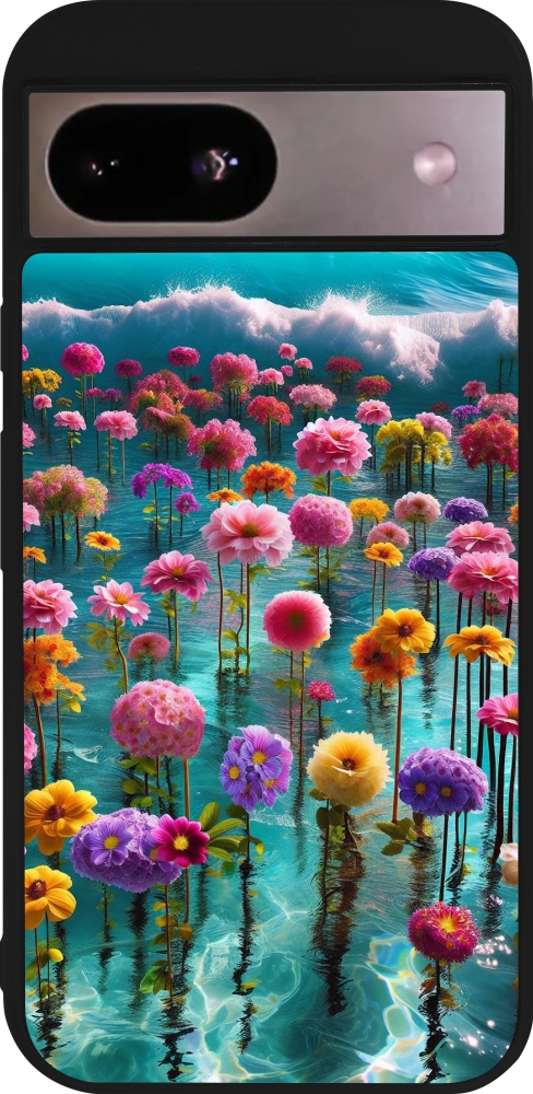 Coque Google Pixel 8a - Silicone rigide noir Flower sea waves