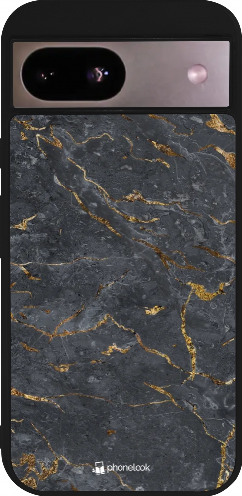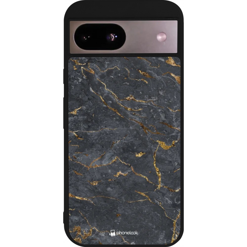 Coque Google Pixel 8a - Silicone rigide noir Grey Gold Marble