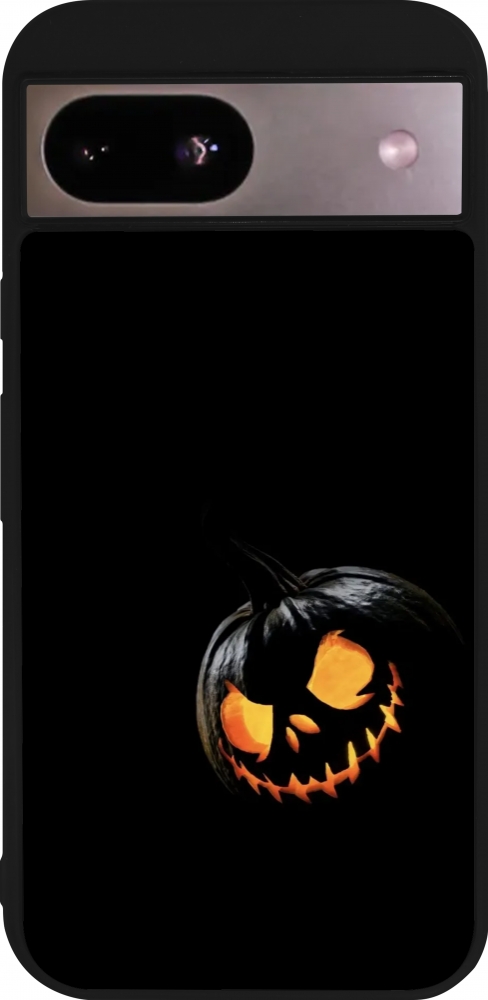 Coque Google Pixel 8a - Silicone rigide noir Halloween 2023 discreet pumpkin