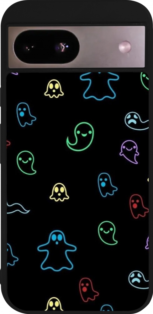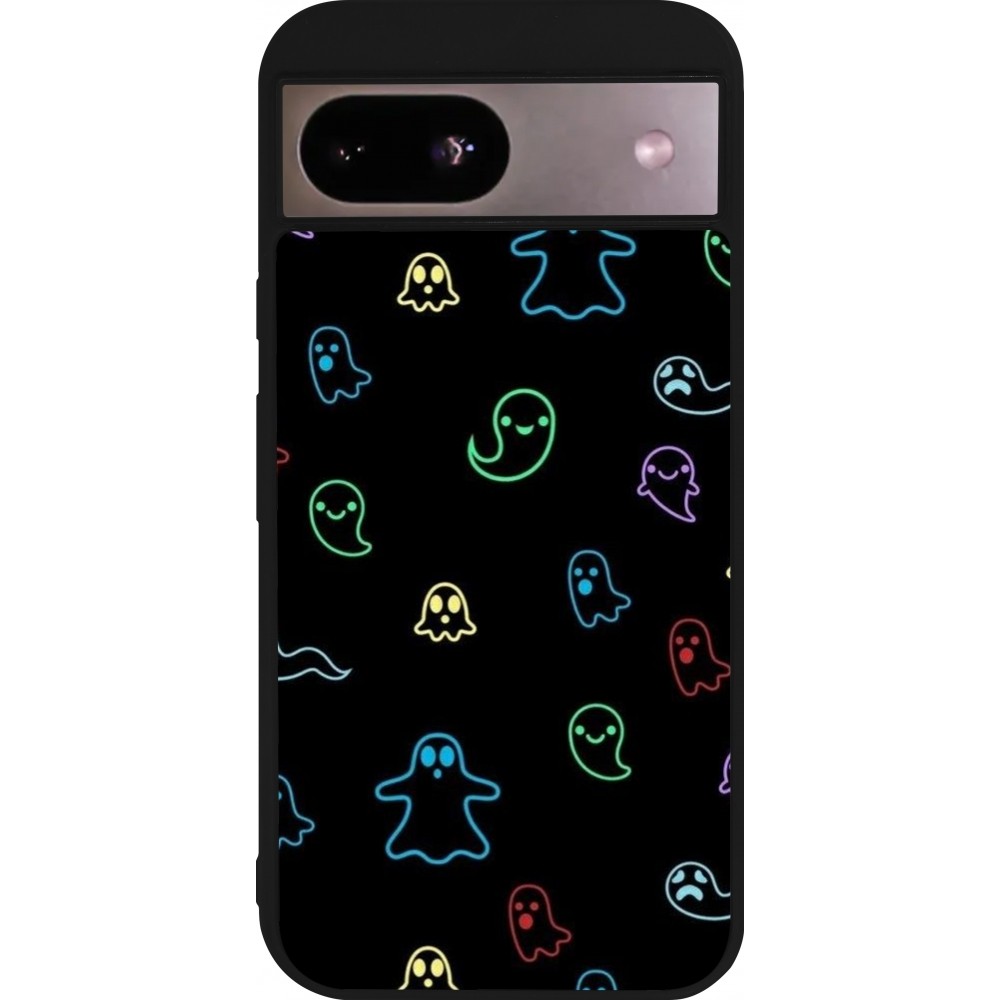 Coque Google Pixel 8a - Silicone rigide noir Halloween 2024 colorful ghosts