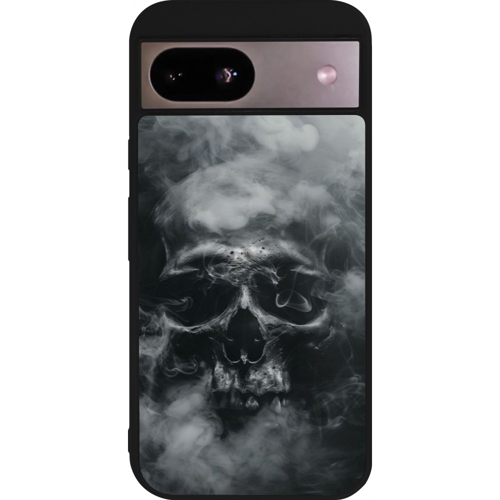 Coque Google Pixel 8a - Silicone rigide noir Halloween 2024 smoky skull