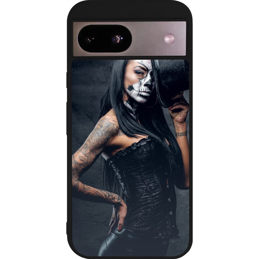 Coque Google Pixel 8a - Silicone rigide noir Halloween 22 Tattooed Girl