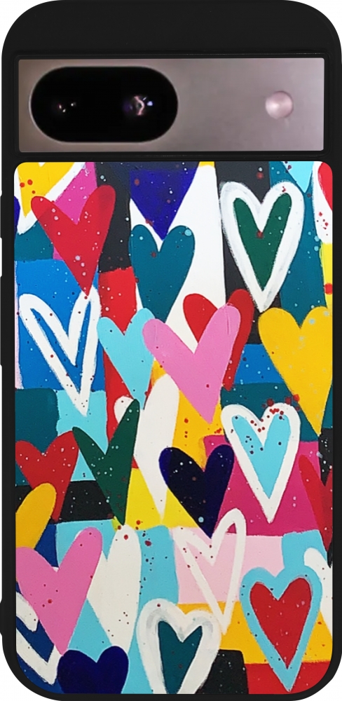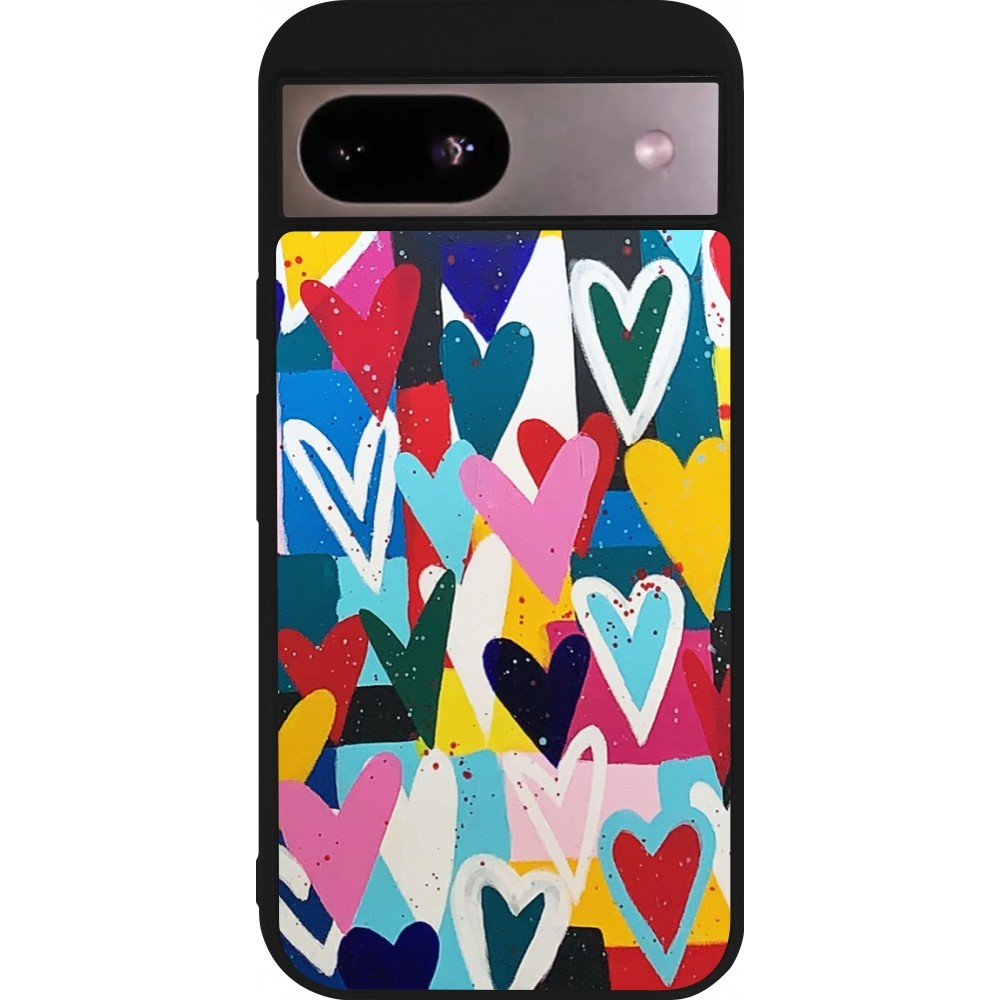 Coque Google Pixel 8a - Silicone rigide noir Joyful Hearts