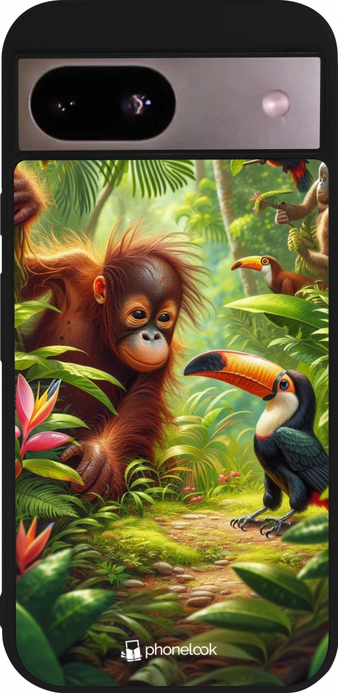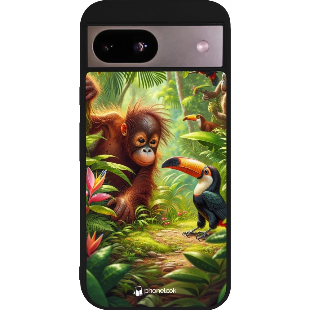 Coque Google Pixel 8a - Silicone rigide noir Jungle Tropicale Tayrona
