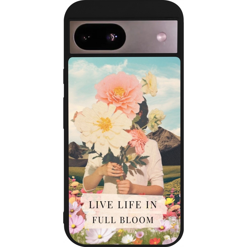 Coque Google Pixel 8a - Silicone rigide noir Live life in full moon Spring 2026