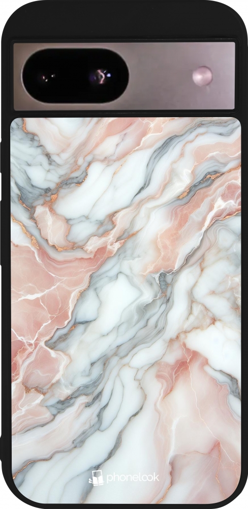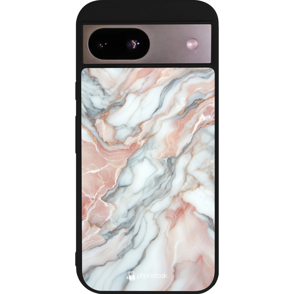 Coque Google Pixel 8a - Silicone rigide noir Marbre Rose Lumineux
