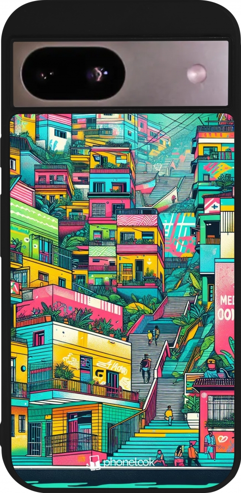 Coque Google Pixel 8a - Silicone rigide noir Medellin Comuna 13 Art