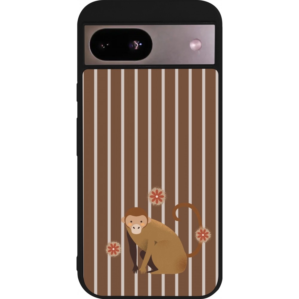 Coque Google Pixel 8a - Silicone rigide noir Monkey with stripes