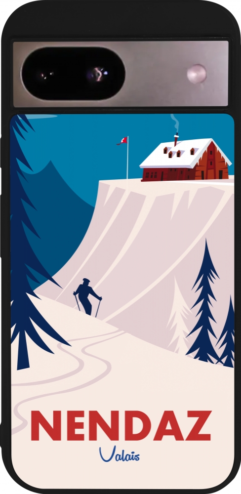 Coque Google Pixel 8a - Silicone rigide noir Nendaz Cabane Ski