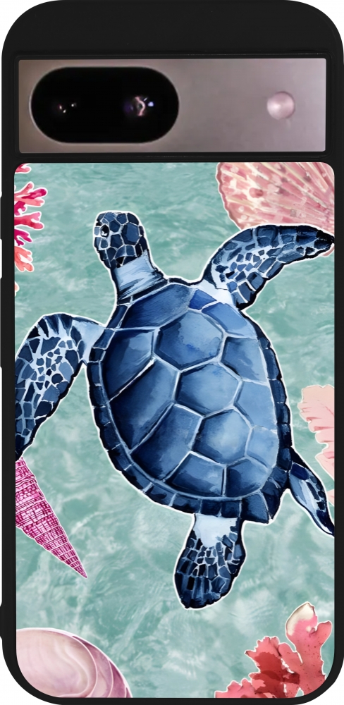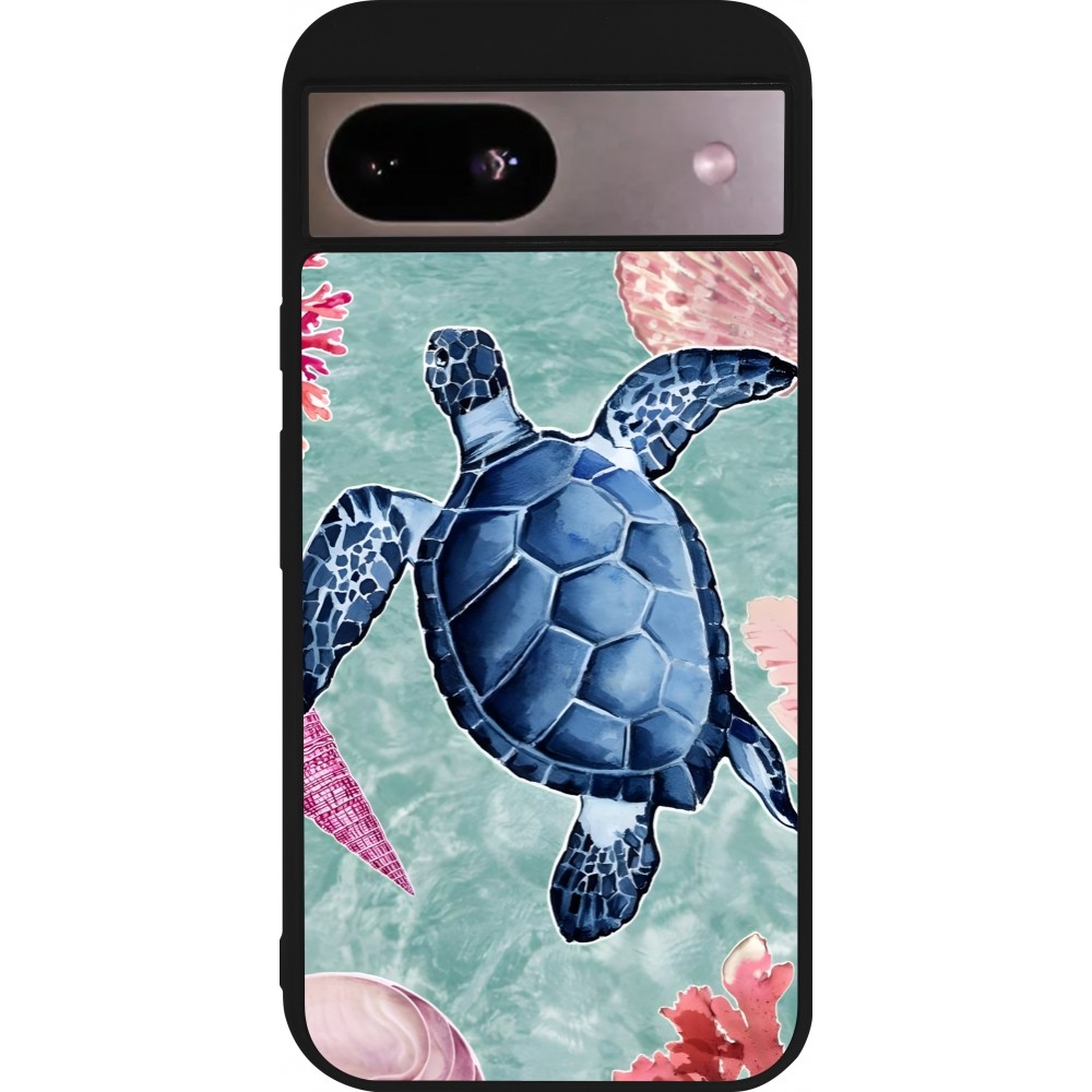 Coque Google Pixel 8a - Silicone rigide noir Preppy Turtle