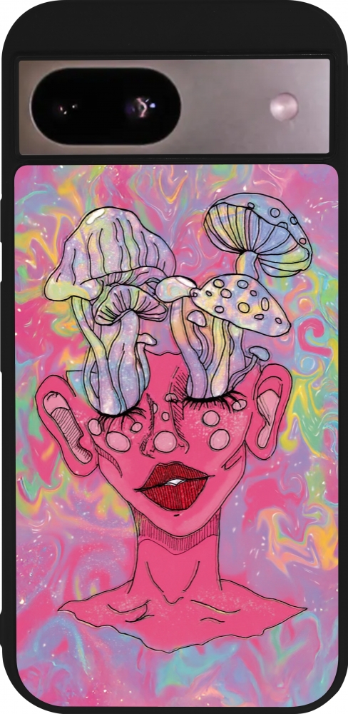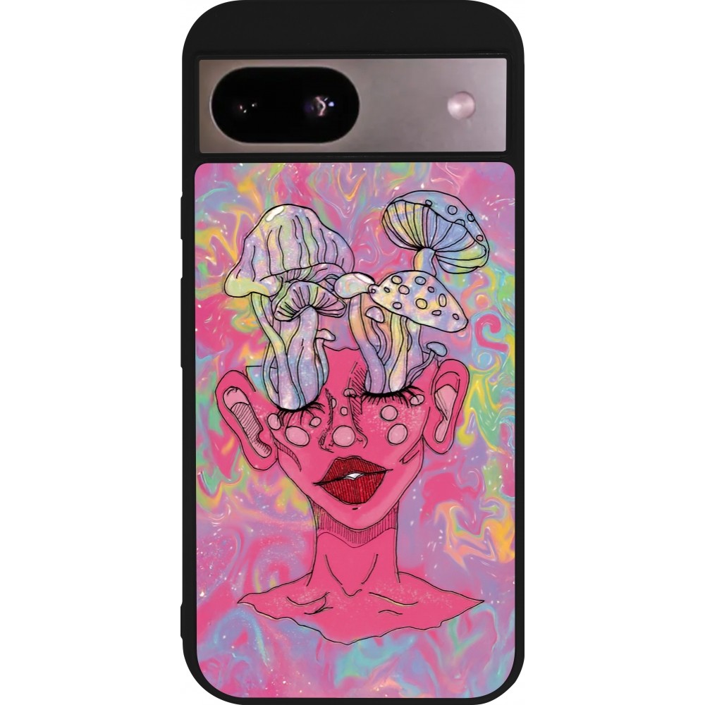 Coque Google Pixel 8a - Silicone rigide noir Psychedelic pink mushroom