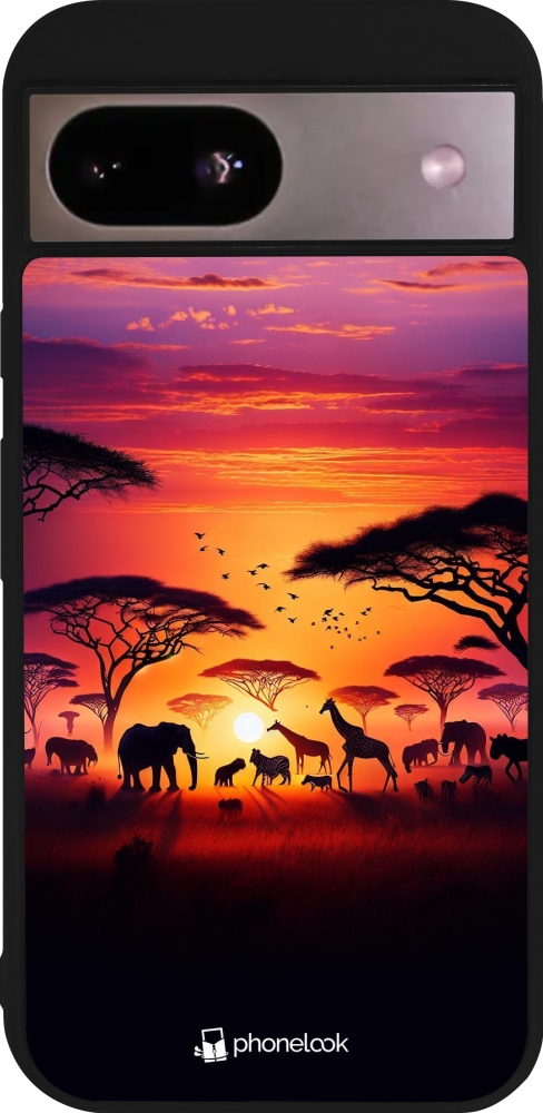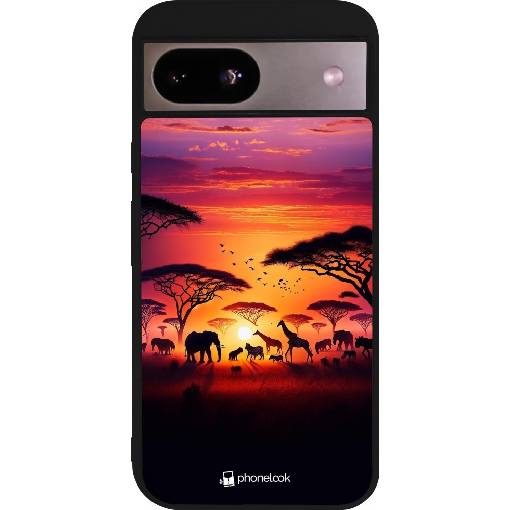 Coque Google Pixel 8a - Silicone rigide noir Safari sunset wildlife