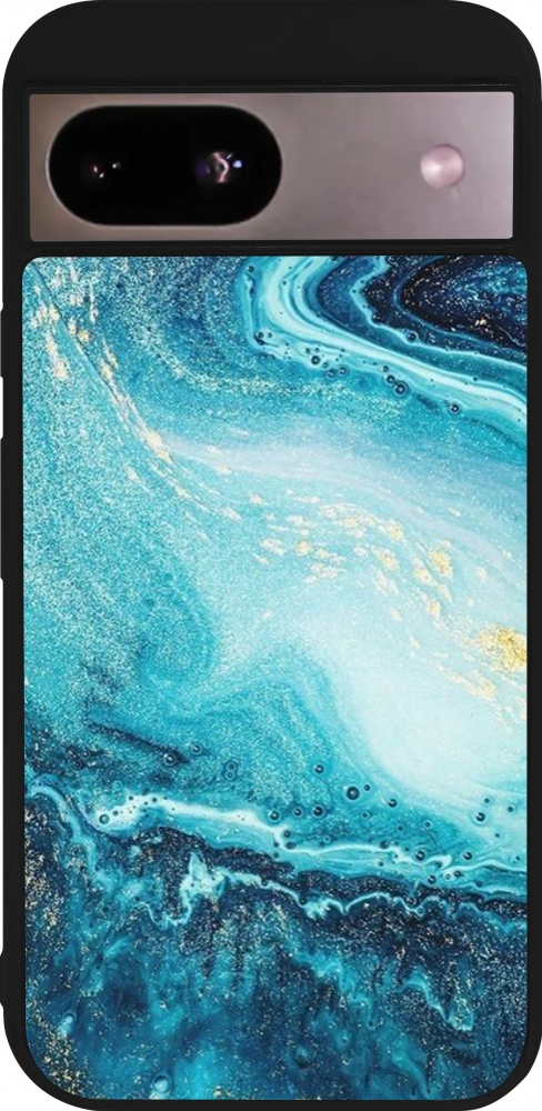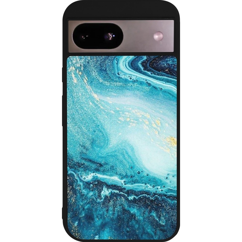 Coque Google Pixel 8a - Silicone rigide noir Sea Foam Blue