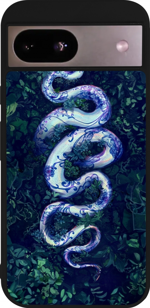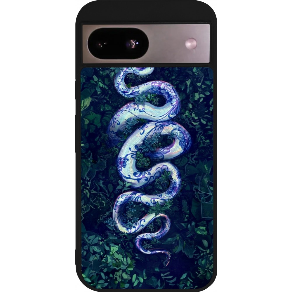 Coque Google Pixel 8a - Silicone rigide noir Serpent Blue Anaconda