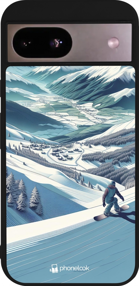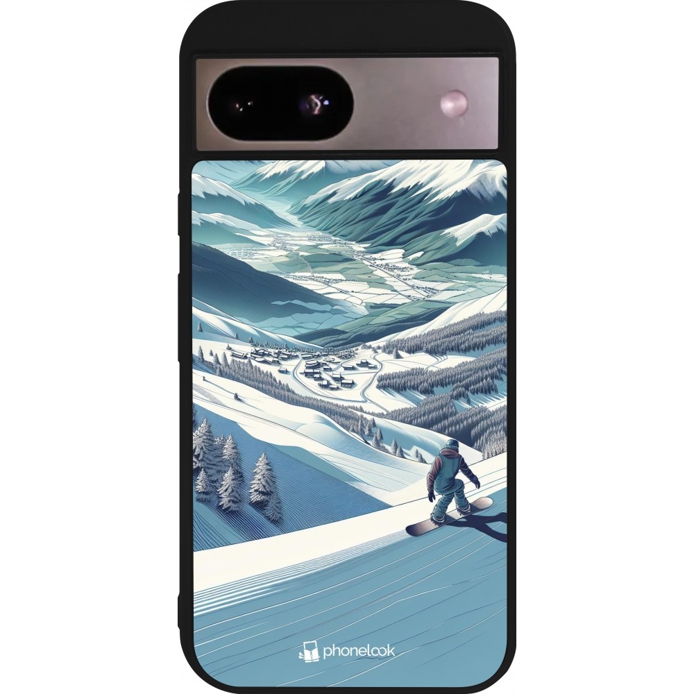 Coque Google Pixel 8a - Silicone rigide noir Snowboarder Montagne