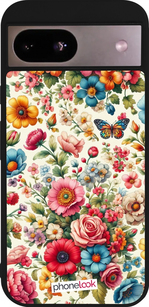 Coque Google Pixel 8a - Silicone rigide noir Spring 25 printemps fleuri