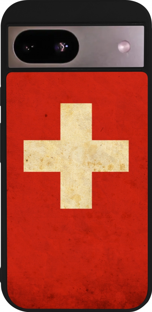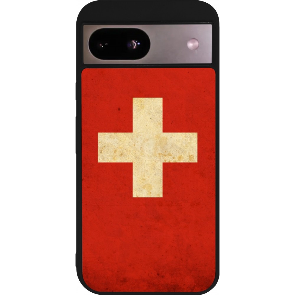 Coque Google Pixel 8a - Silicone rigide noir Vintage Flag SWISS